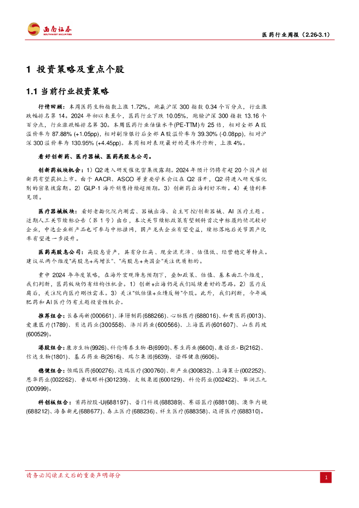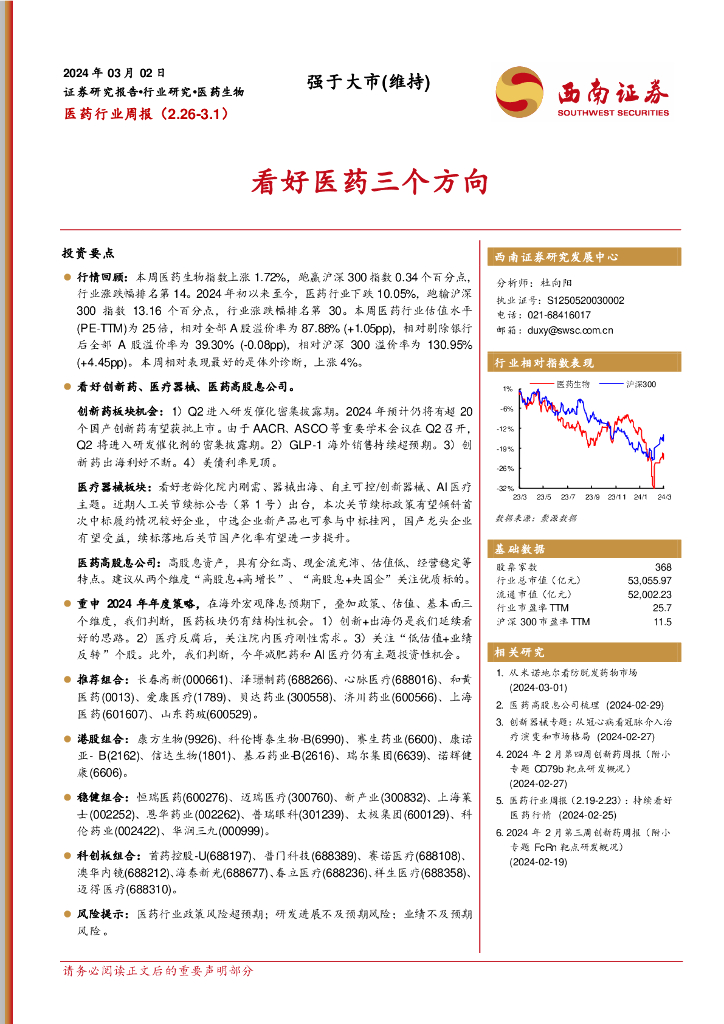 西南证券:医药行业周报:看好医药三个方向.pdf