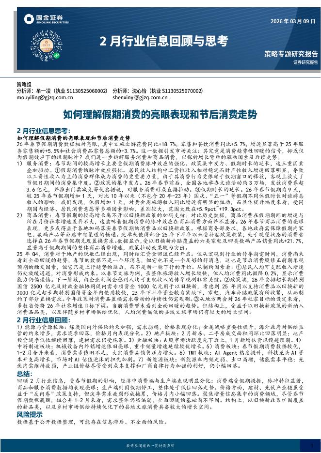 国金证券:2月行业信息回顾与思考:如何理解假期消费的亮眼表现和节后消费走势-260310.pdf