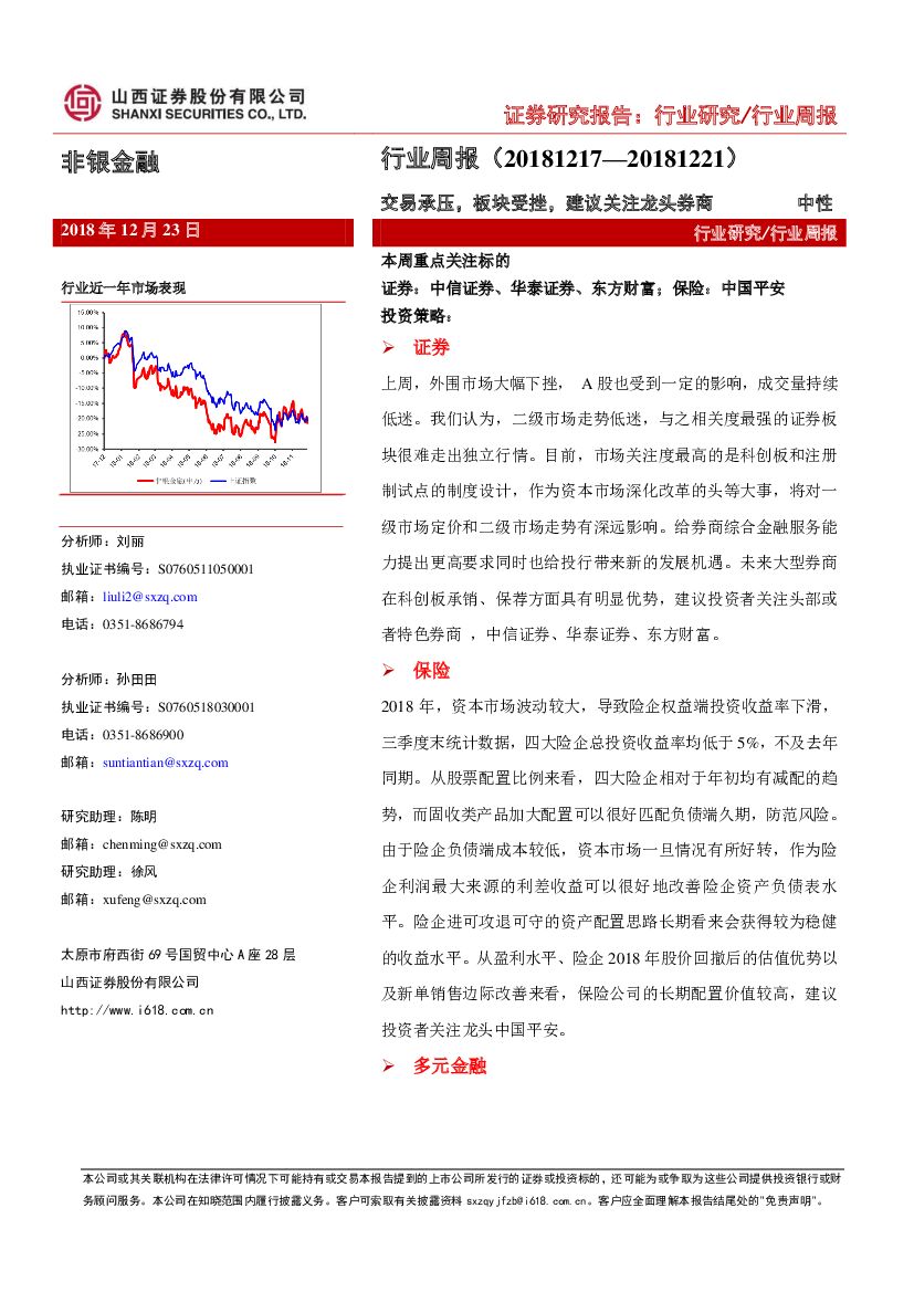山西证券:非银金融行业周报:交易承压,板块受挫,建议关注龙头券商.pdf