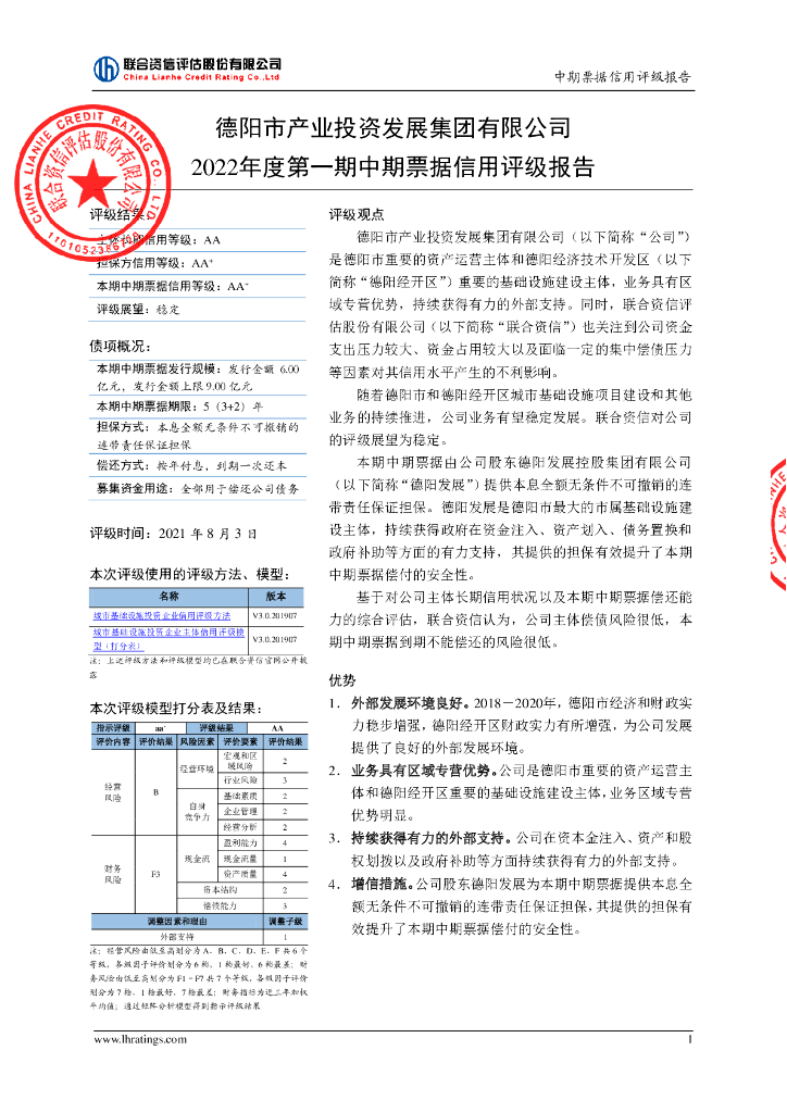 联合资信:德阳市产业投资发展集团有限公司2022年度第一期中期票据信用评级报告.pdf