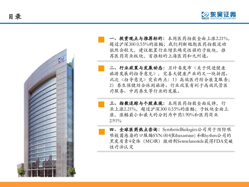 东吴证券:东吴医药行业周观点:医药指数持续波动,建议配置增长确定性强的医药商业子版块首推标的上海医药、九州通.pdf