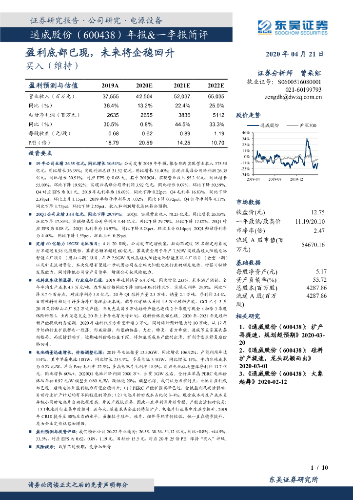 东吴证券:通威股份(600438)-年报&一季报简评:盈利底部已现,未来将企稳回升.pdf