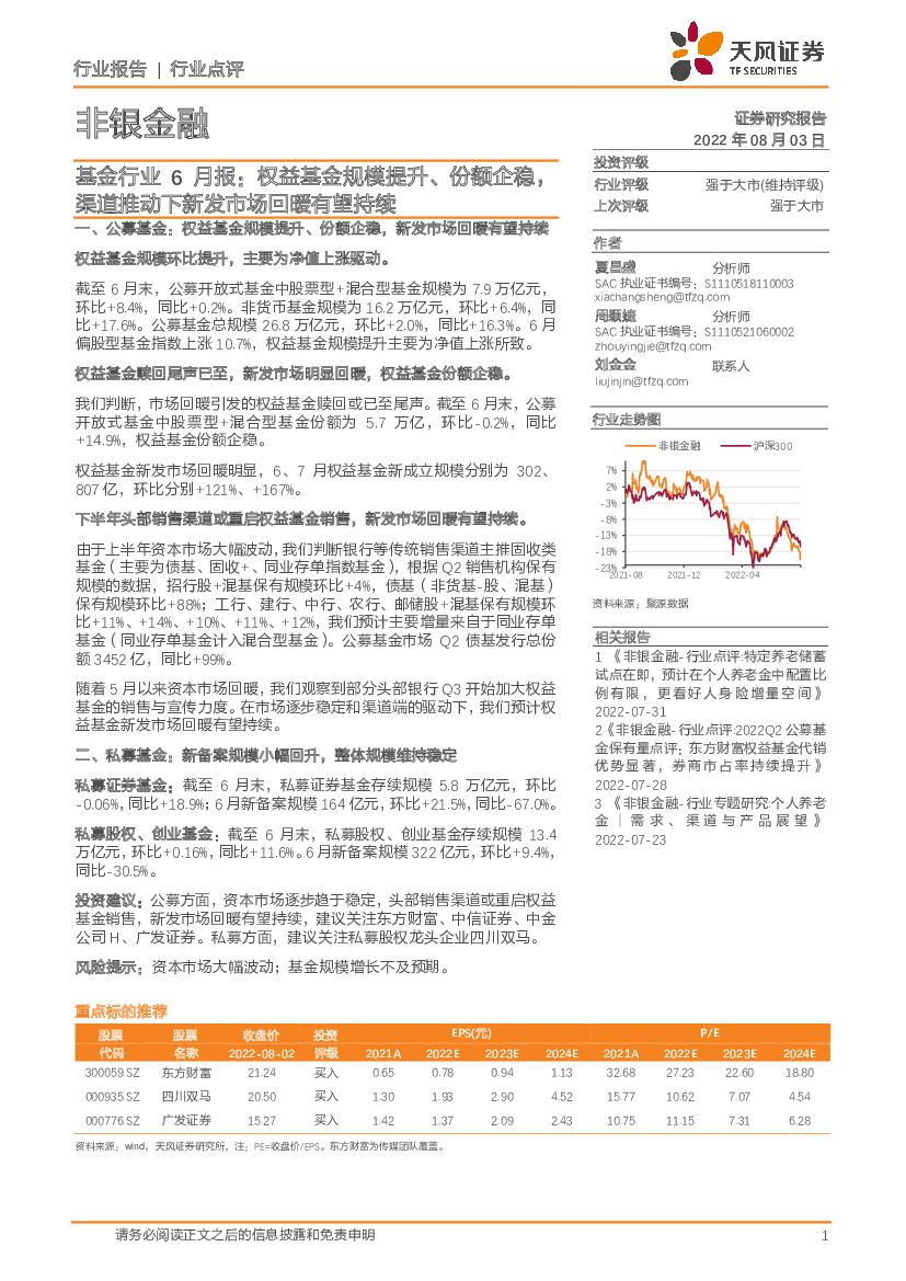 天风证券:基金行业6月报:权益基金规模提升、份额企稳,渠道推动下新发市场回暖有望持续.pdf
