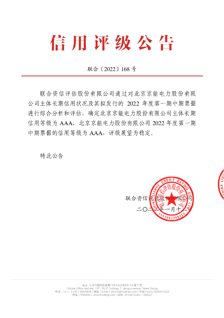 联合资信:北京京能电力股份有限公司2022年度第一期中期票据信用评级报告.pdf