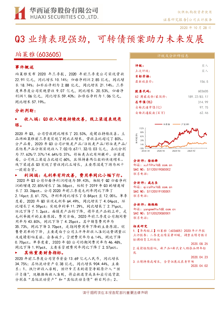 华西证券:珀莱雅(603605)-Q3业绩表现强劲,可转债预案助力未来发展.pdf