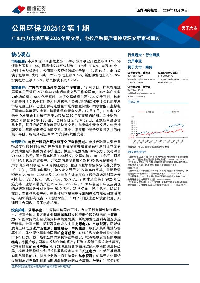 国信证券:公用环保202512第1期:广东电力市场开展2026年度交易,电投产融资产置换获深交所审核通过.pdf