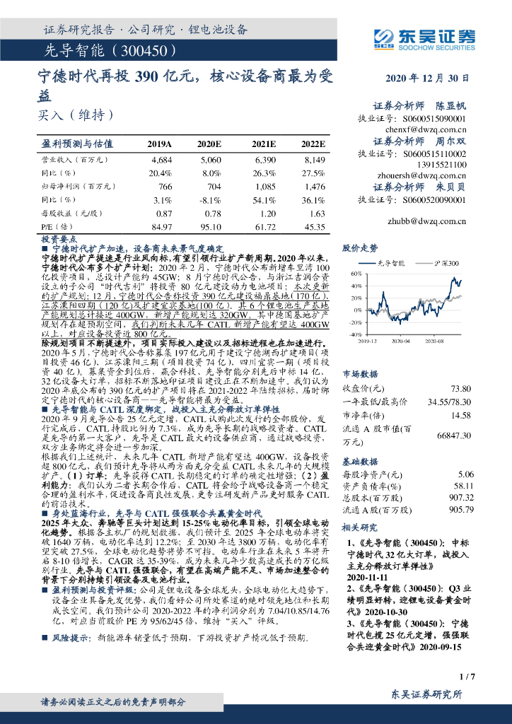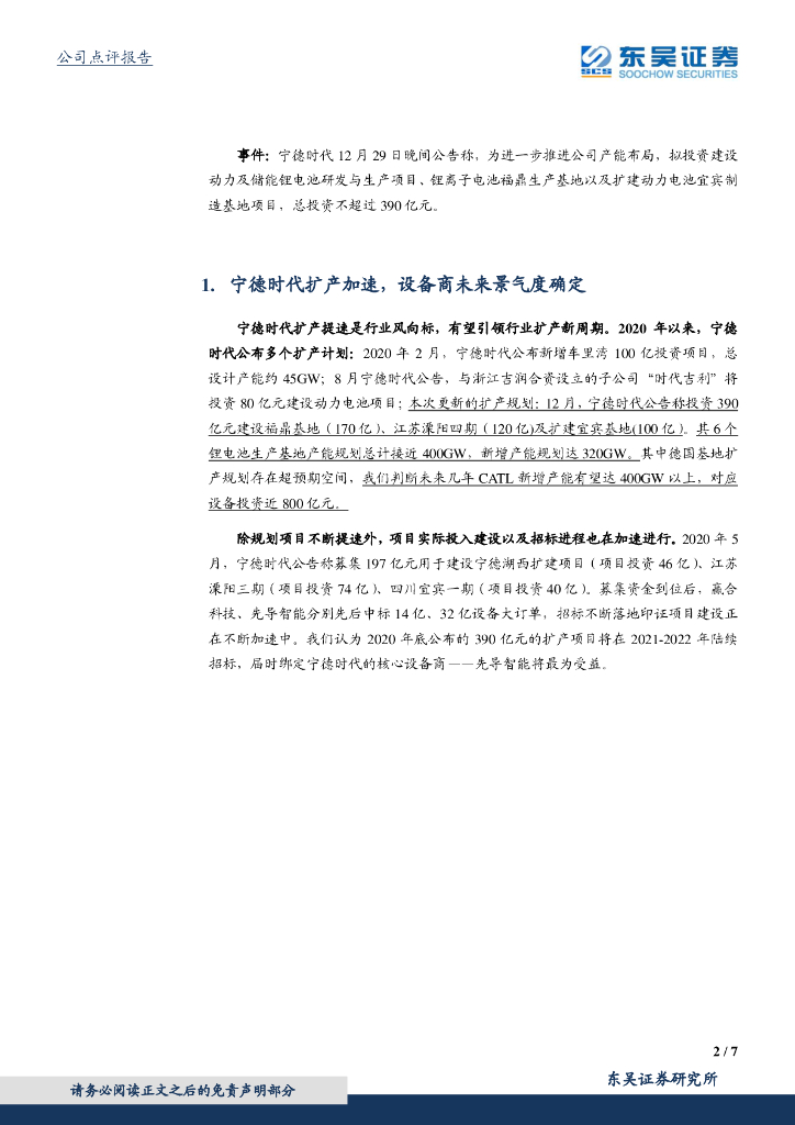 东吴证券:先导智能(300450)-宁德时代再投390亿元,核心设备商最为受益.pdf