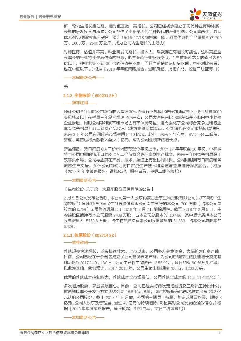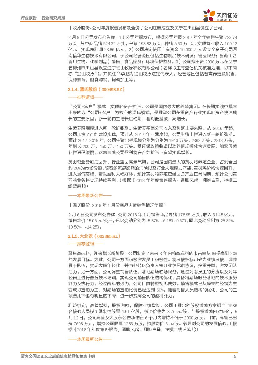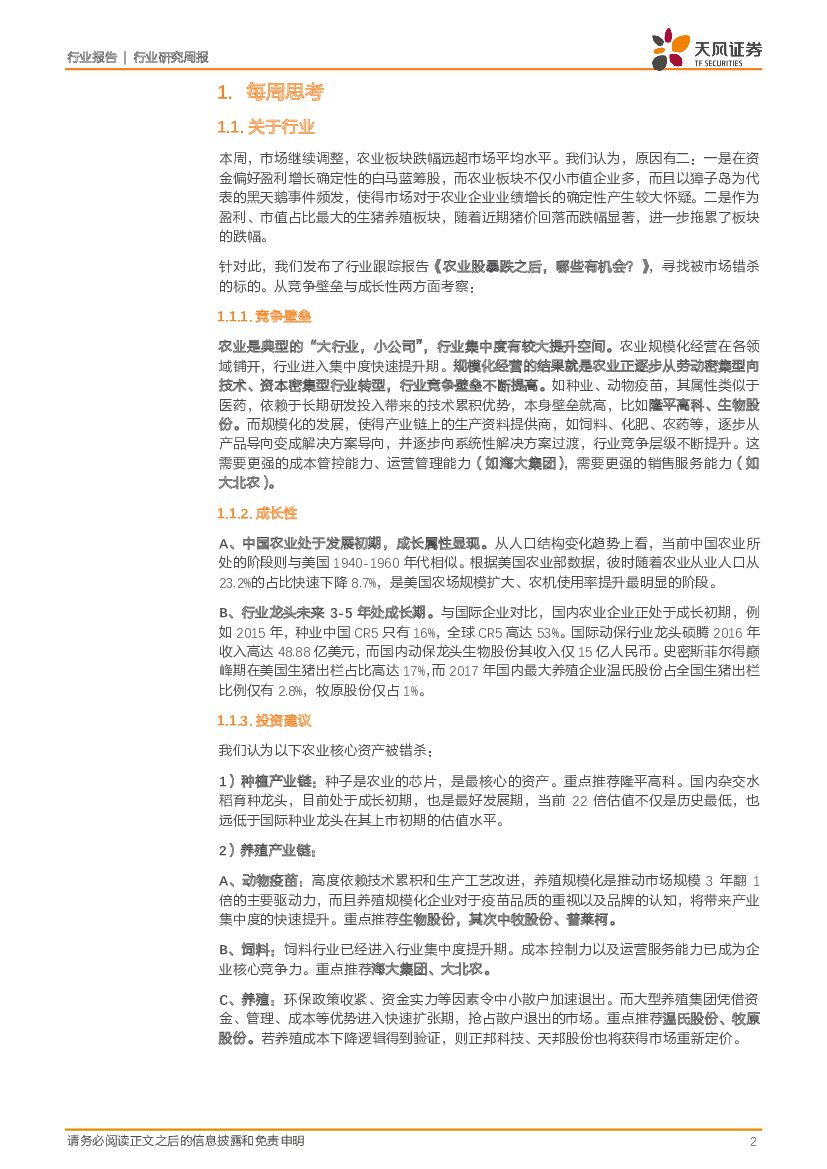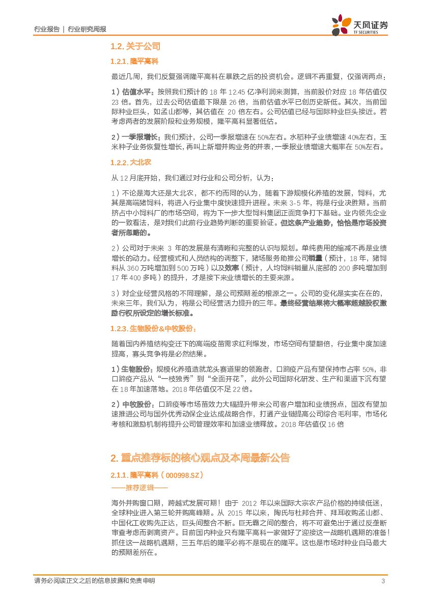 天风证券:农林牧渔2018年第6周周报:本周农业建议配置种业龙头+养殖后周期:推荐:隆平高科(龙头),大北农(低估值)、其次动保双雄(生物、中牧)!.pdf