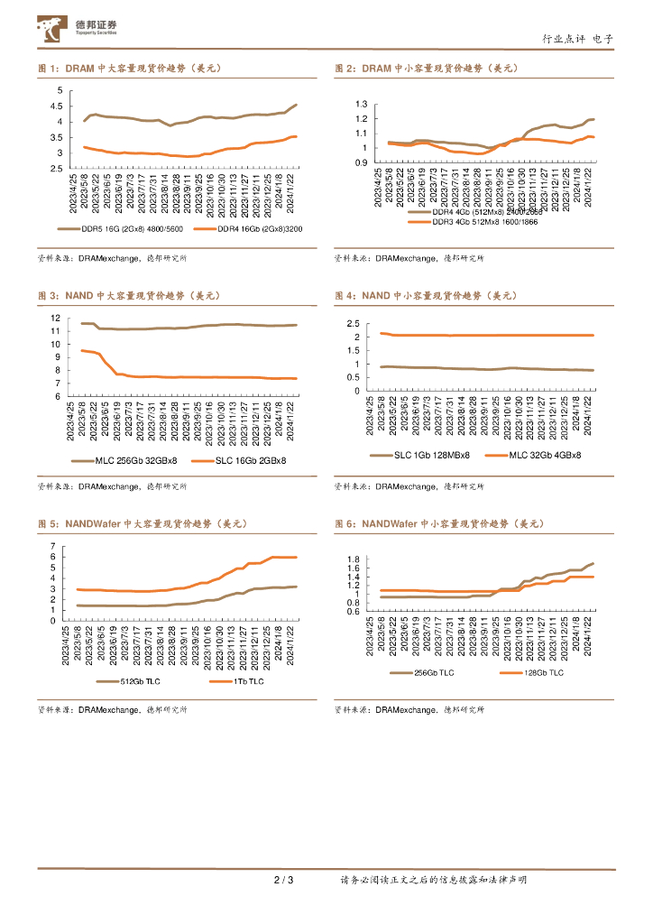 德邦证券:电子行业存储价格周度跟踪-0129:DRAM价格持续上涨,NAND备货需求略有降温.pdf