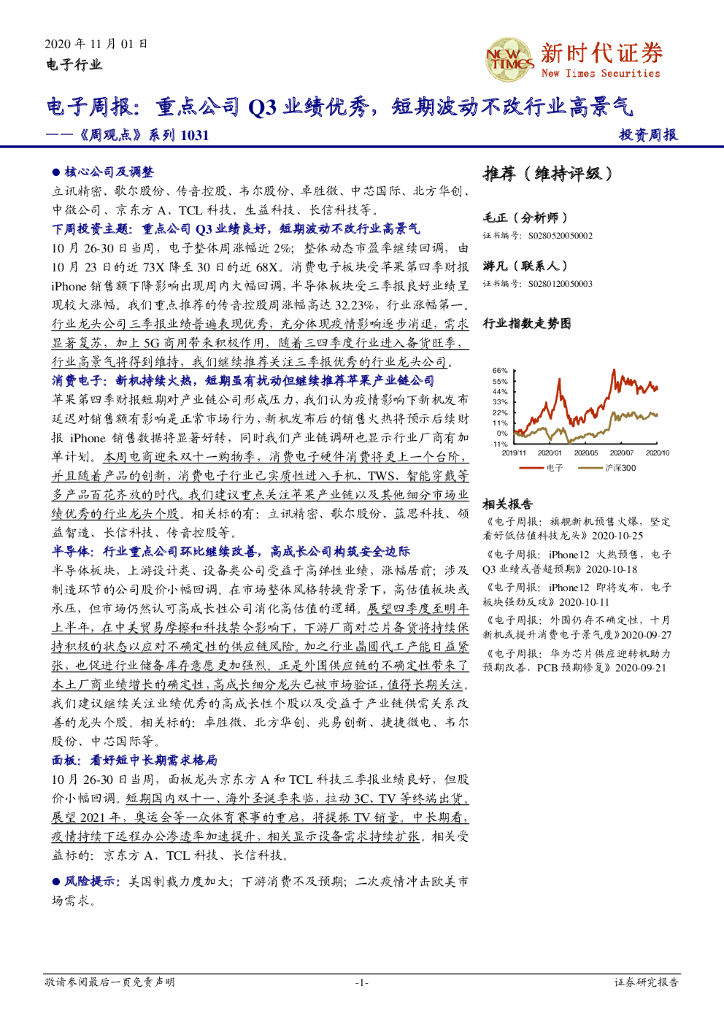 新时代证券:电子周报:重点公司Q3业绩优秀,短期波动不改行业高景气——《周观点》系列.pdf