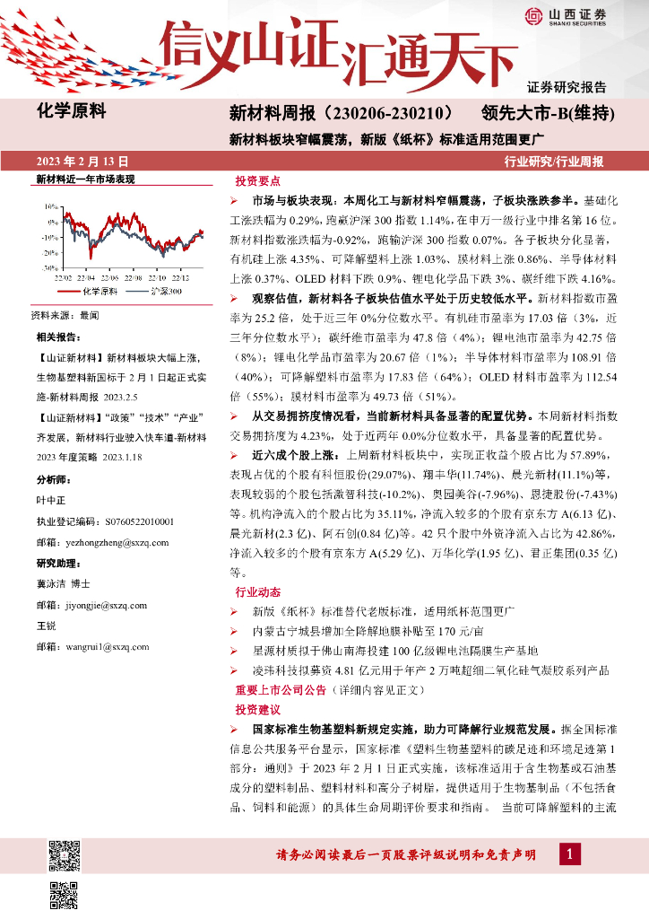 山西证券:新材料周报:新材料板块窄幅震荡,新版《纸杯》标准适用范围更广.pdf