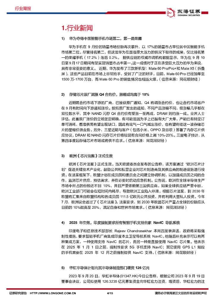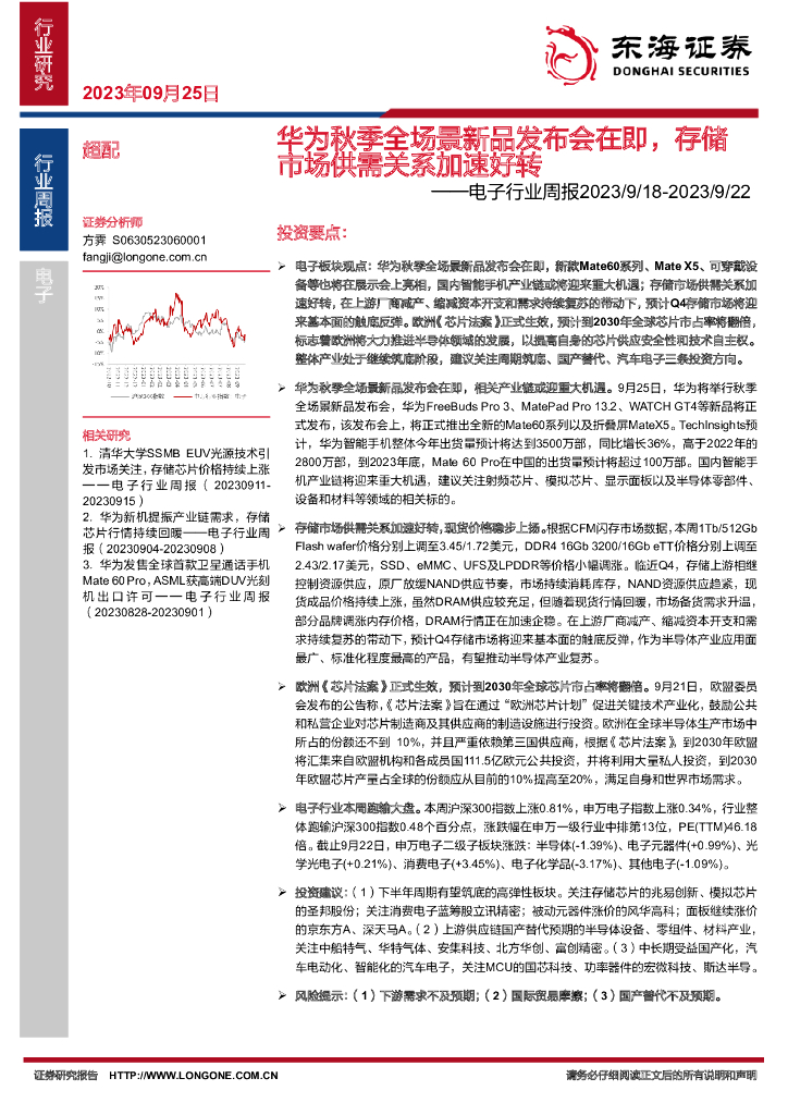 东海证券:电子行业周报:华为秋季全场景新品发布会在即,存储市场供需关系加速好转.pdf