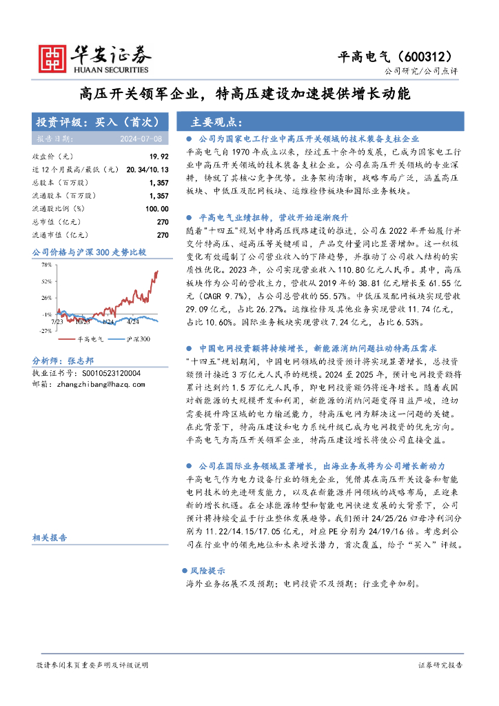华安证券:平高电气(600312)-高压开关领军企业,特高压建设加速提供增长动能.pdf