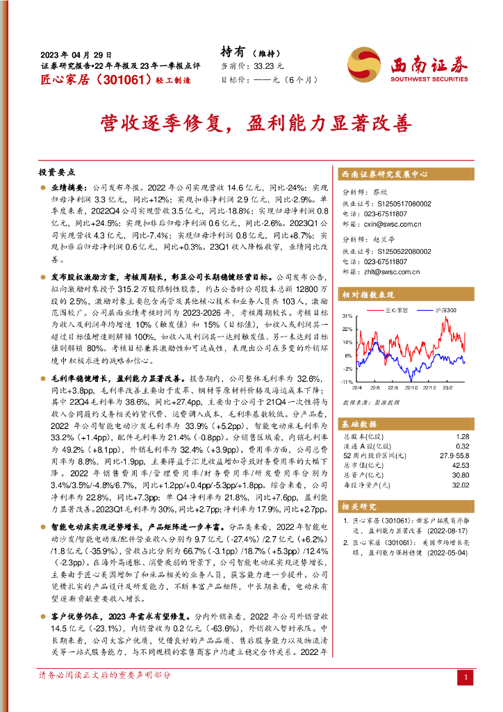 西南证券:匠心家居(301061)-营收逐季修复,盈利能力显著改善.pdf