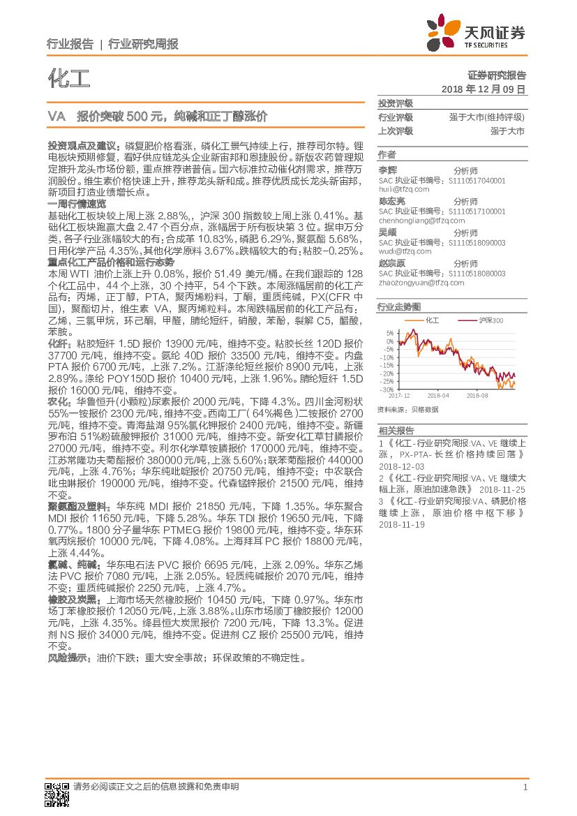 天风证券:化工行业研究周报:VA报价突破500元,纯碱和正丁醇涨价.pdf