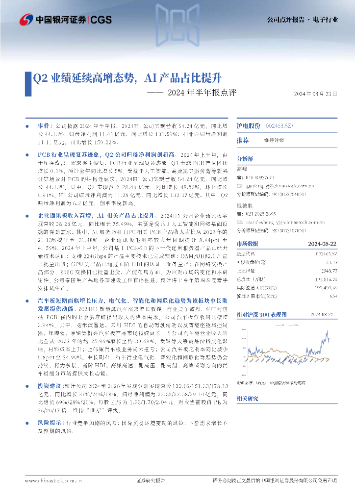 中国银河:沪电股份(002463)-2024年半年报点评:Q2业绩延续高增态势,AI产品占比提升.pdf