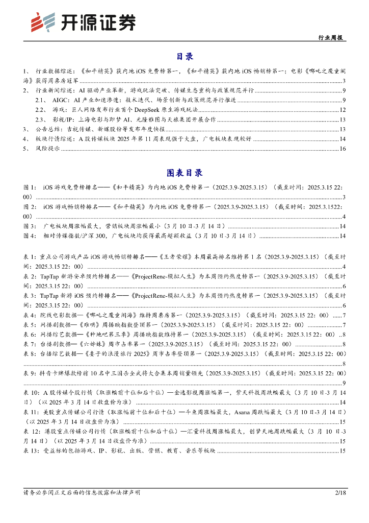 开源证券:传媒行业周报:继续布局AI游戏等AI应用,关注少儿文化消费方向行业周报.pdf
