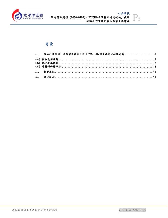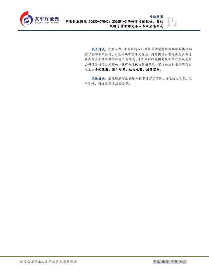 太平洋证券:家电行业周报:2025M1-5两轮车增速较快,美的战略合作荣耀完善人车家生态布局.pdf