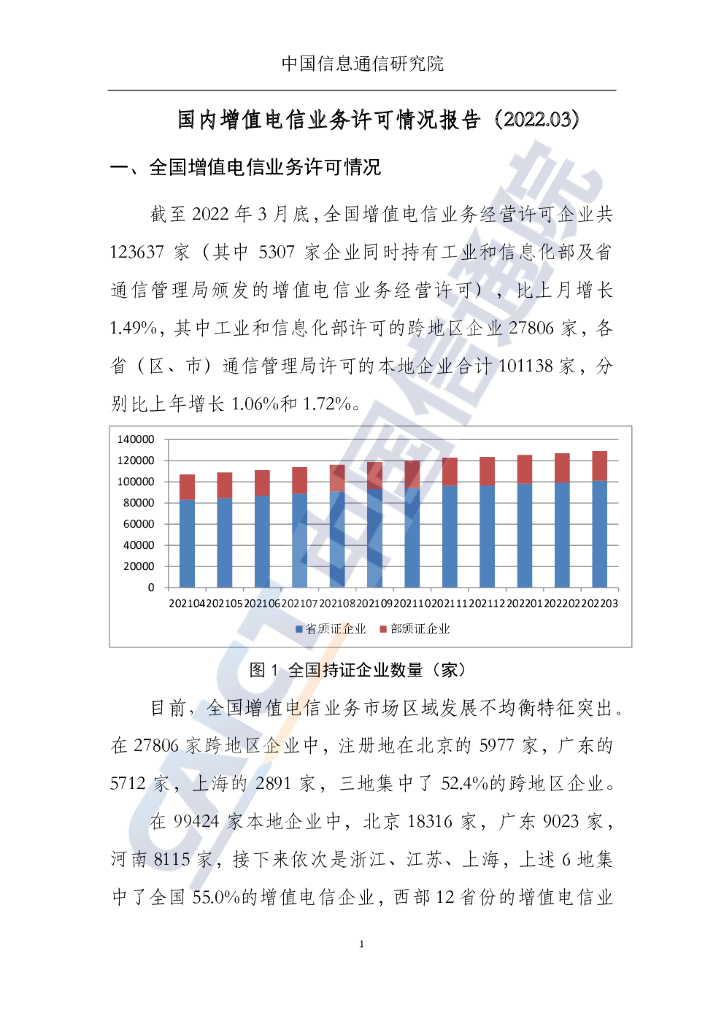 中国信通院:国内增值电信业务许可情况报告(2022.3).pdf
