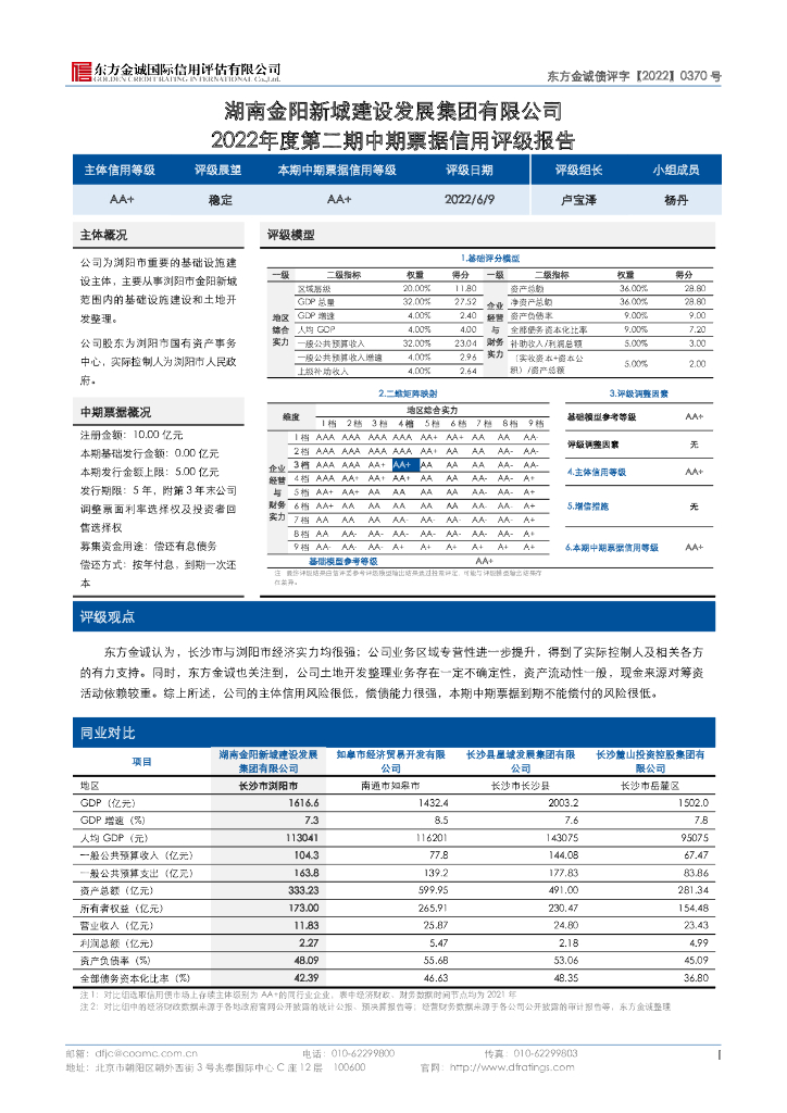 东方金诚:湖南金阳新城建设发展集团有限公司2022年度第二期中期票据信用评级报告.pdf