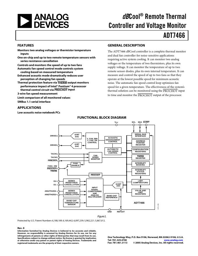 ON SEMICONDUCTOR dBCool Remote Thermal Contr6oller and Voltage Monitor ADT7466 数据手册.pdf