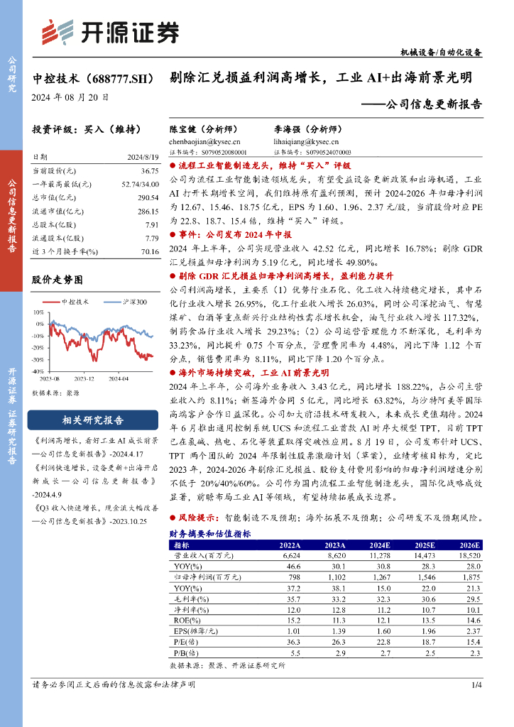 开源证券:中控技术(688777)-公司信息更新报告:剔除汇兑损益利润高增长,工业AI+出海前景光明.pdf