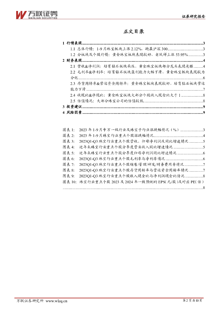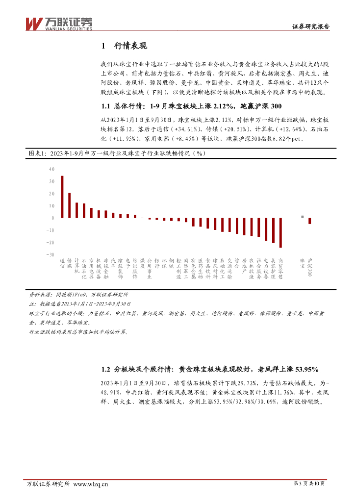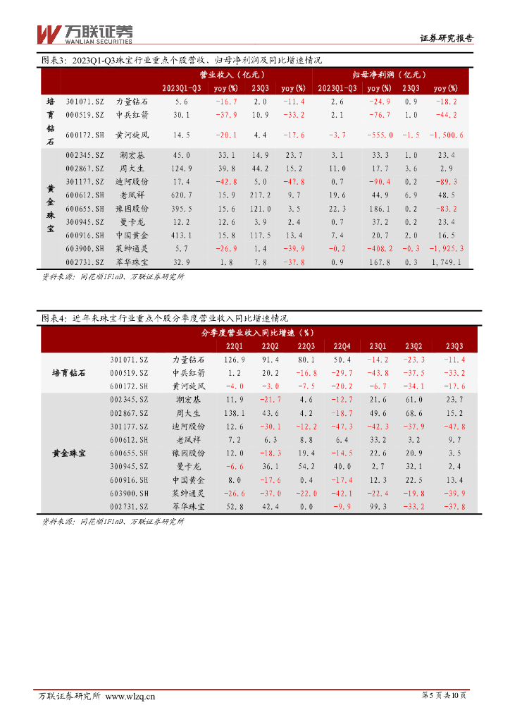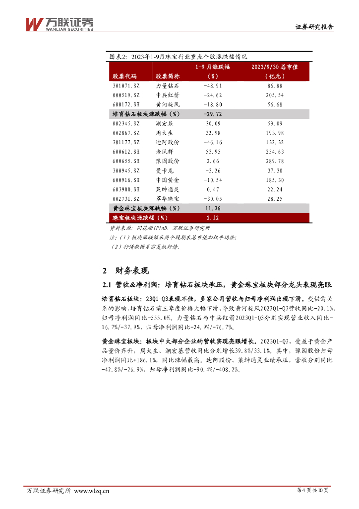 万联证券:珠宝行业2023年三季报综述:培育钻石板块业绩承压,黄金珠宝板块表现较好.pdf