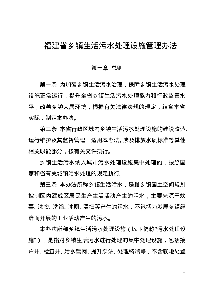 福建省乡镇生活污水处理设施管理办法.doc