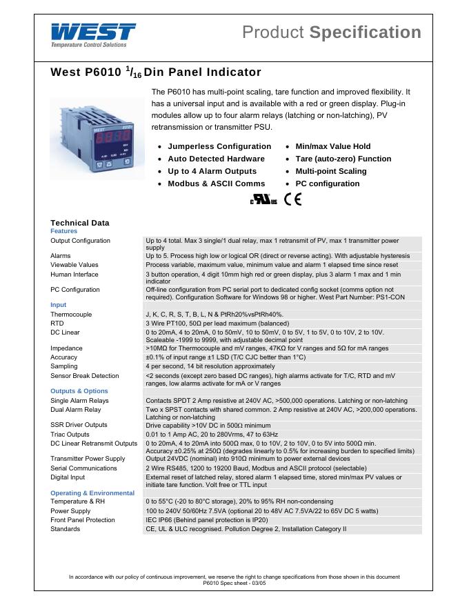 WEST INSTRUMENTS P6010 数据手册.pdf
