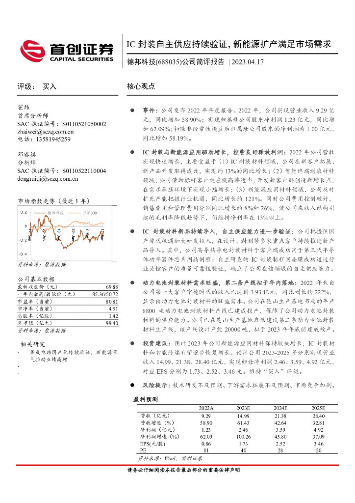 首创证券:德邦科技(688035)-公司简评报告:IC封装自主供应持续验证,新能源扩产满足市场需求.pdf