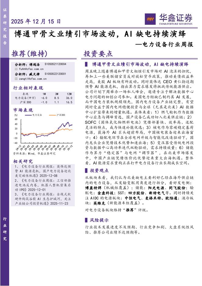 华鑫证券:电力设备行业周报:博通甲骨文业绩引市场波动,AI缺电持续演绎.pdf