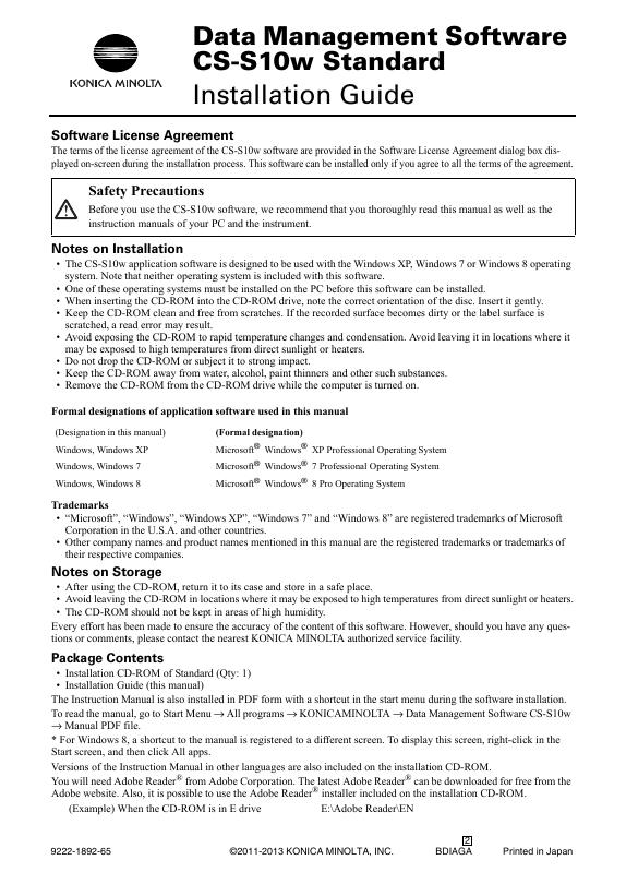 KONICA MINOLTA CS-S10w 数据管理软件安装指南.pdf