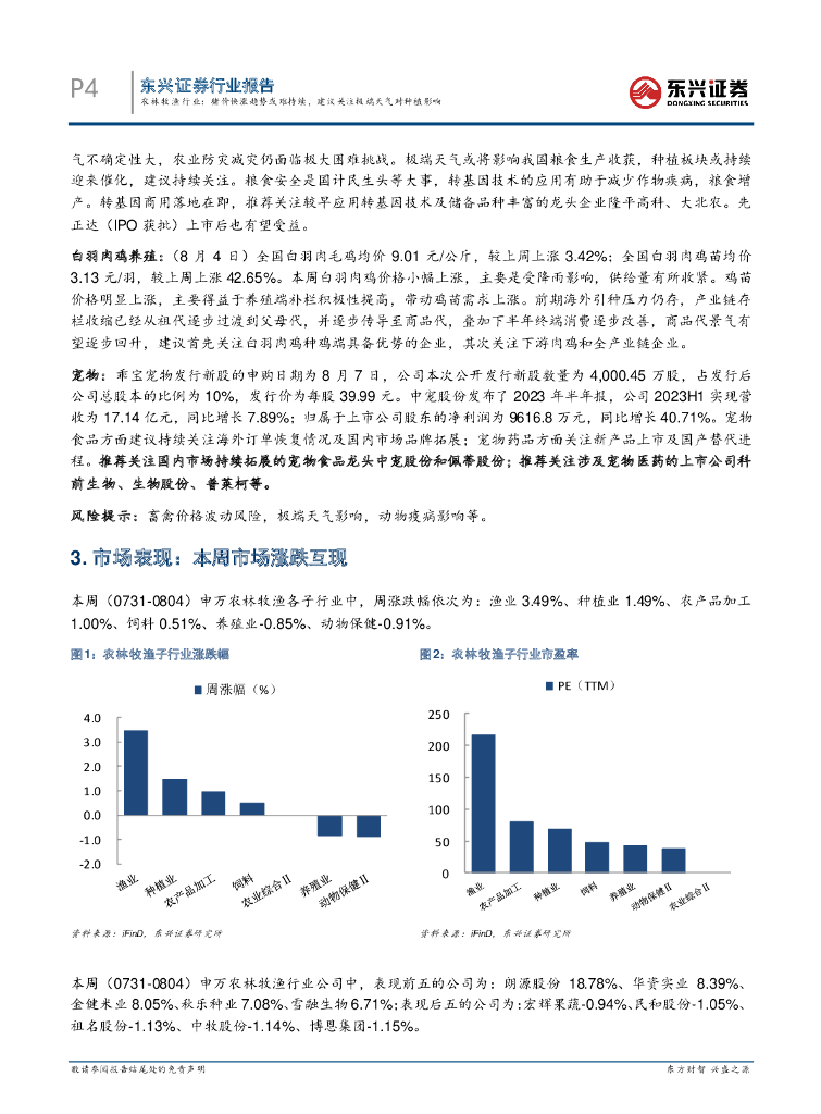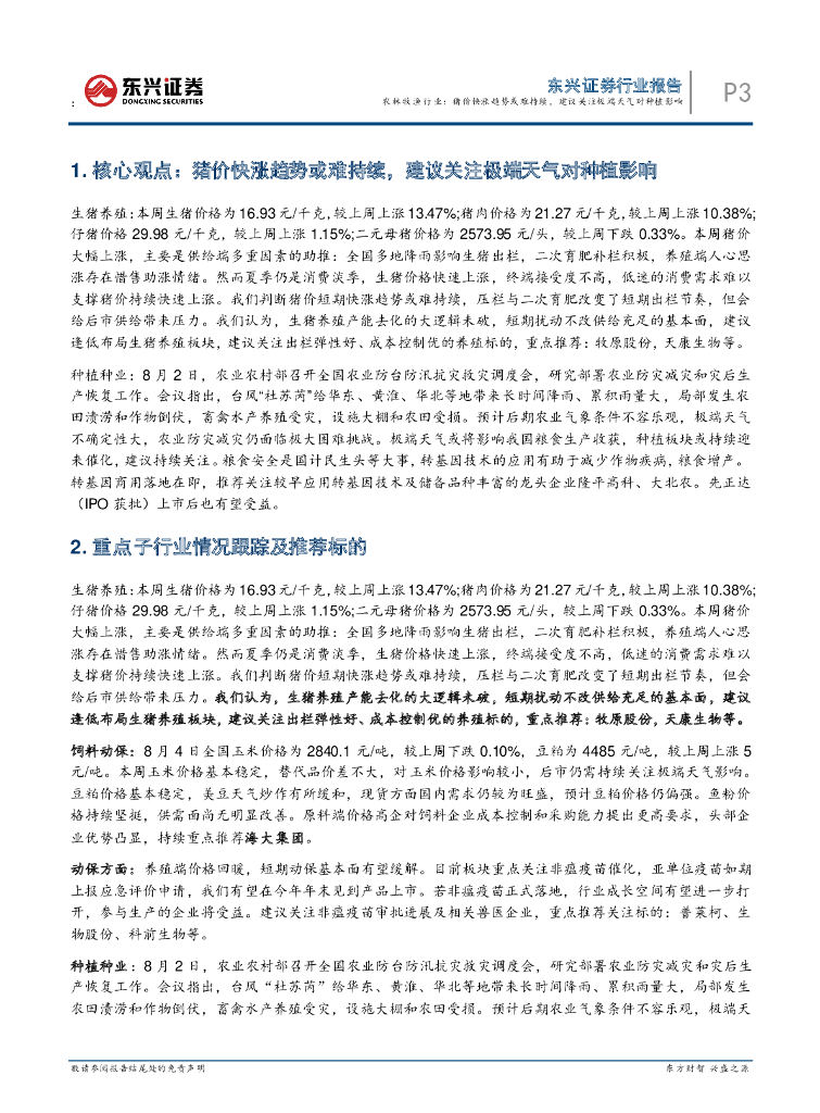 东兴证券:农林牧渔行业行业周观点(2023年第31周):猪价快涨趋势或难持续,建议关注极端天气对种植影响.pdf