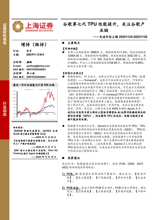 上海证券:电子行业先进科技主题:谷歌第七代TPU性能提升,关注谷歌产业链.pdf
