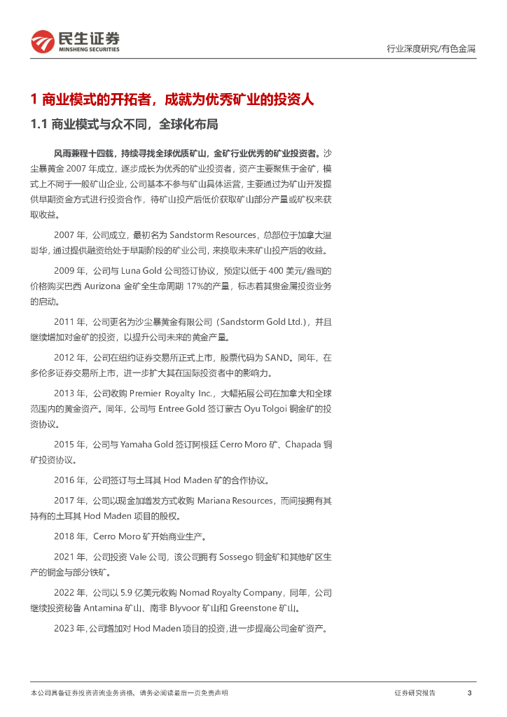 民生证券:海外黄金股观察系列之七:沙尘暴黄金:优秀的矿业投资者.pdf