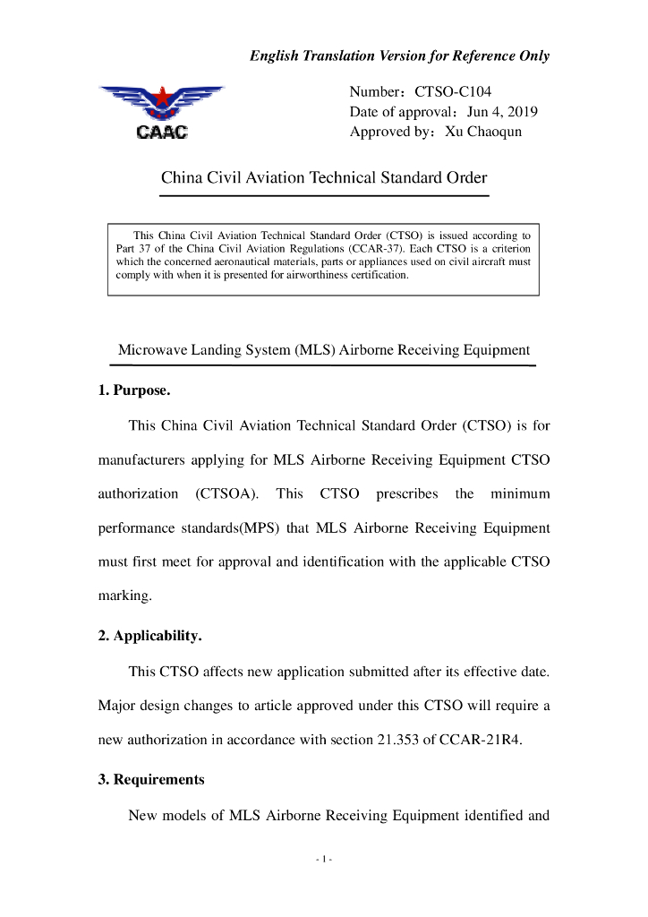 CTSO-C104 《微波着陆系统_MLS_机载接收设备》英文翻译版.pdf
