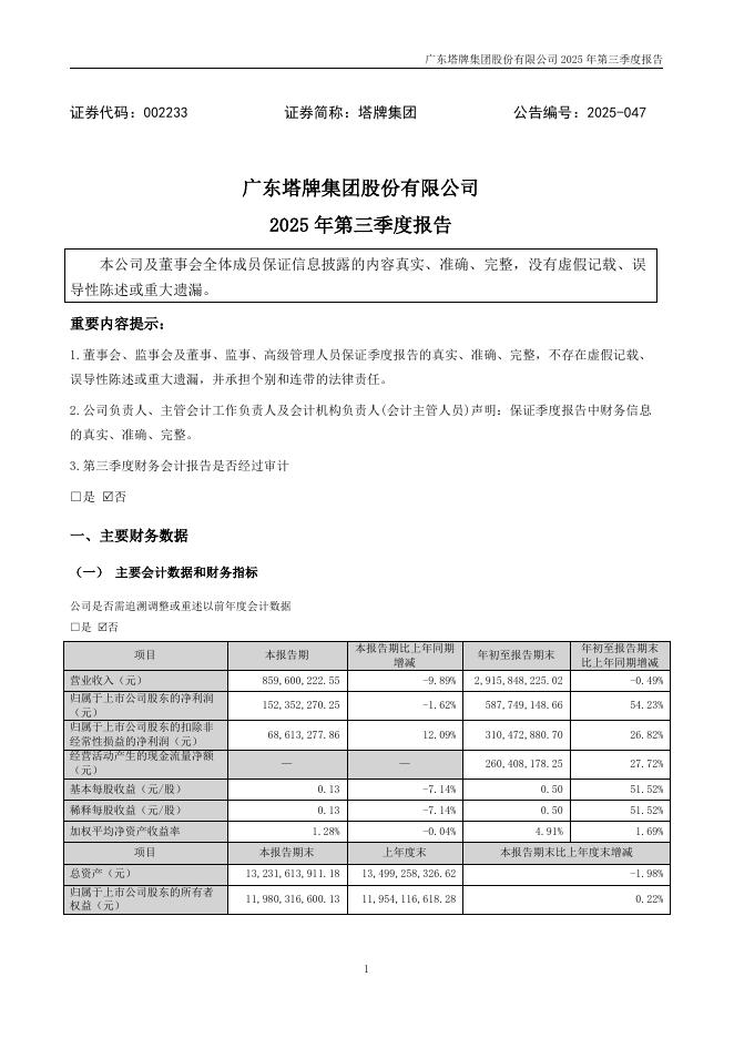 002233-塔牌集团:2025年三季度报告.pdf