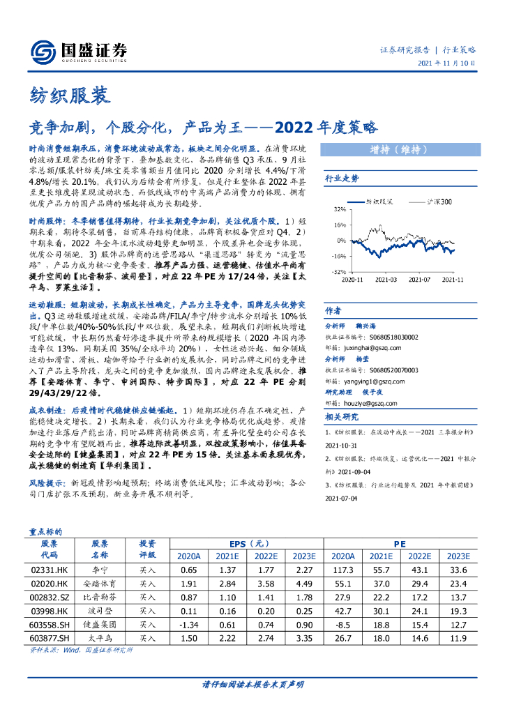 国盛证券:纺织服装行业2022年度策略:竞争加剧,个股分化,产品为王.pdf