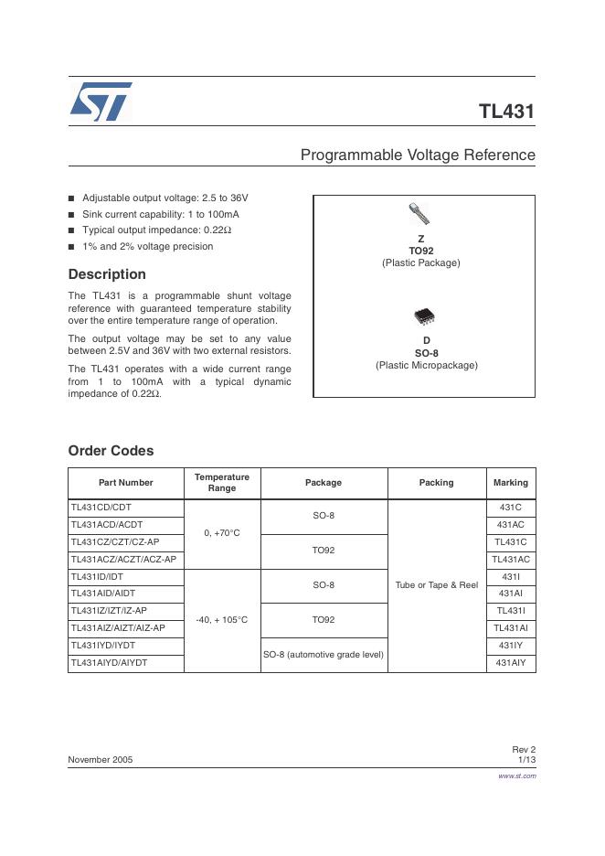 STMICROELECTRONICS TL431 数据手册.pdf