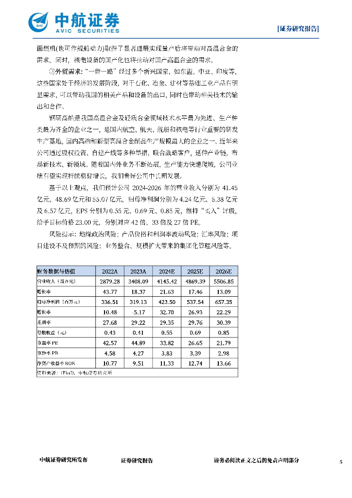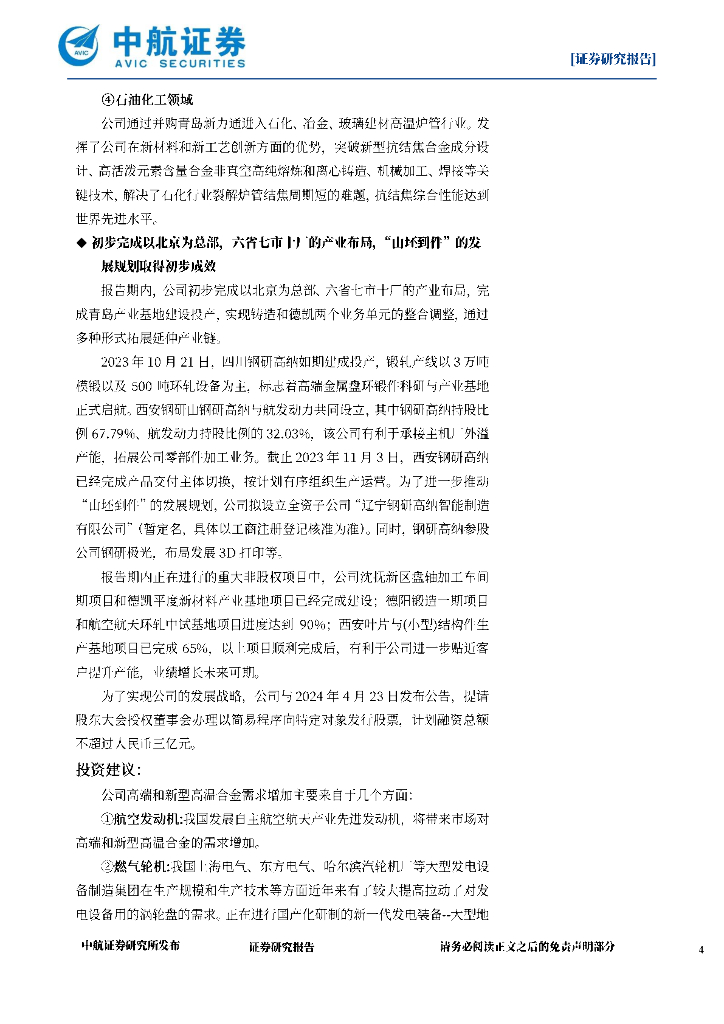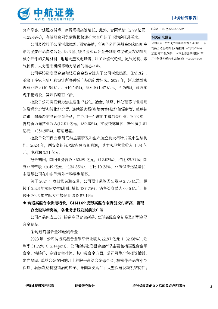 中航证券:钢研高纳(300034)-2023年报及2024一季报点评:海外业务高速增长,国内业务“由坯到件”取得成效.pdf