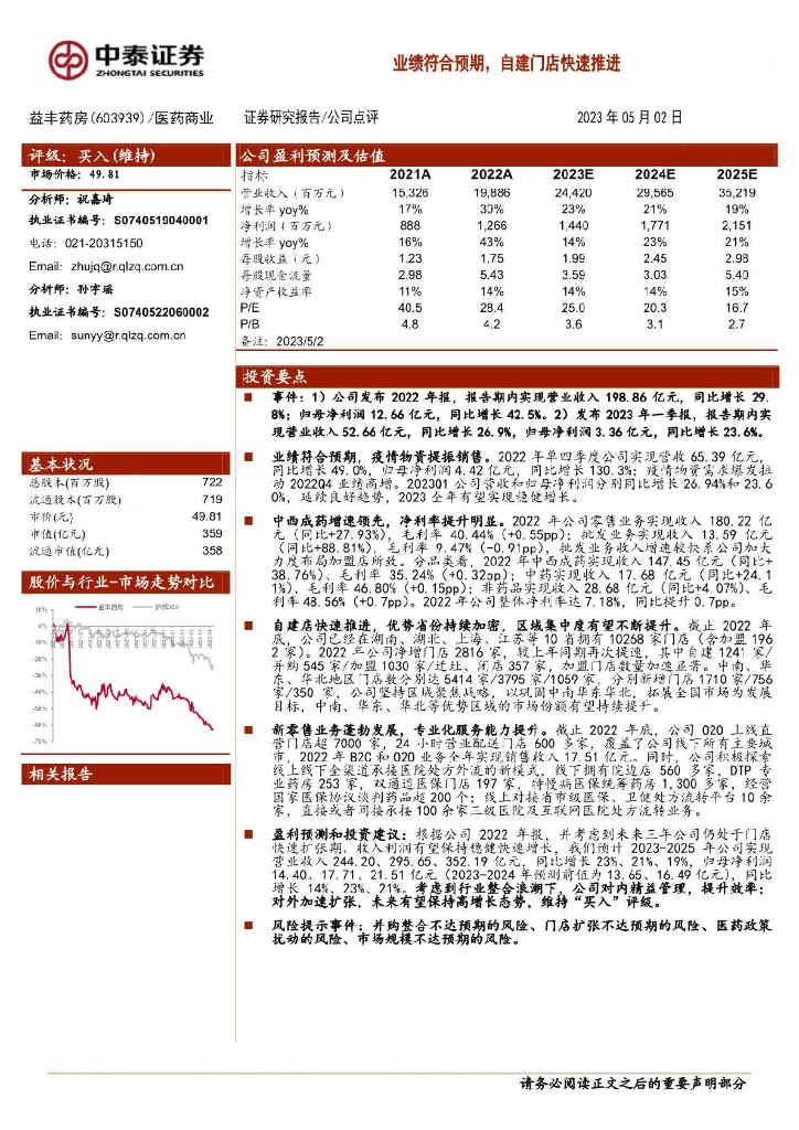 中泰证券:益丰药房(603939)-业绩符合预期,自建门店快速推进.pdf