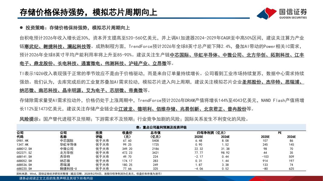 国信证券:半导体2月投资策略:存储价格保持强势,模拟芯片周期向上.pdf