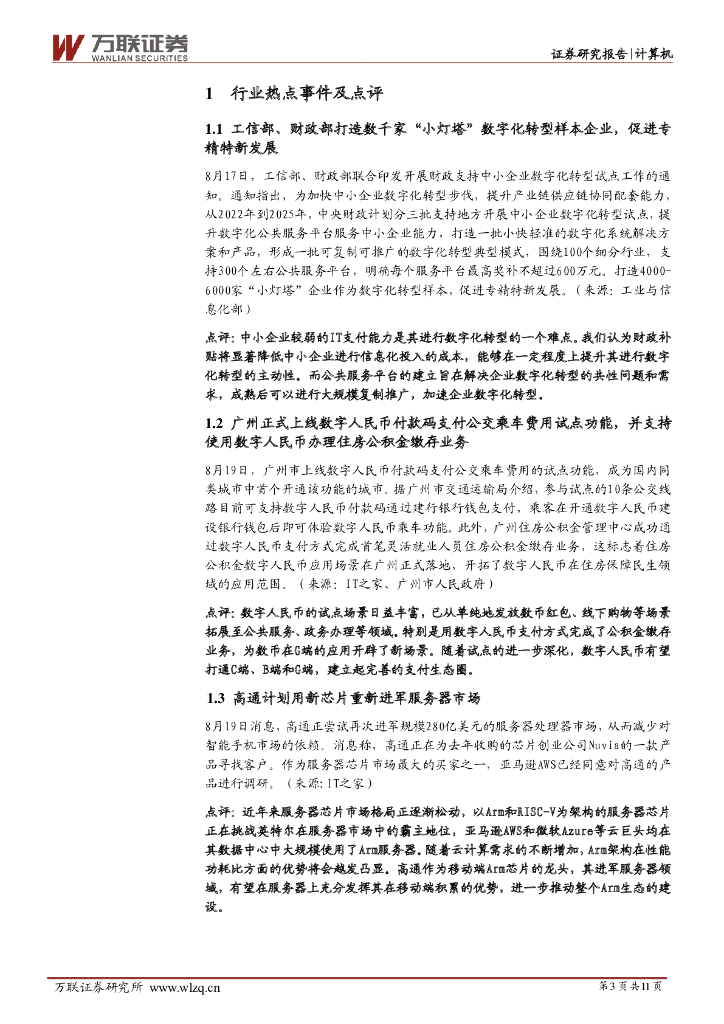万联证券:计算机行业周观点:工信部、财政部开展财政支持中小企业数字化转型试点工作.pdf