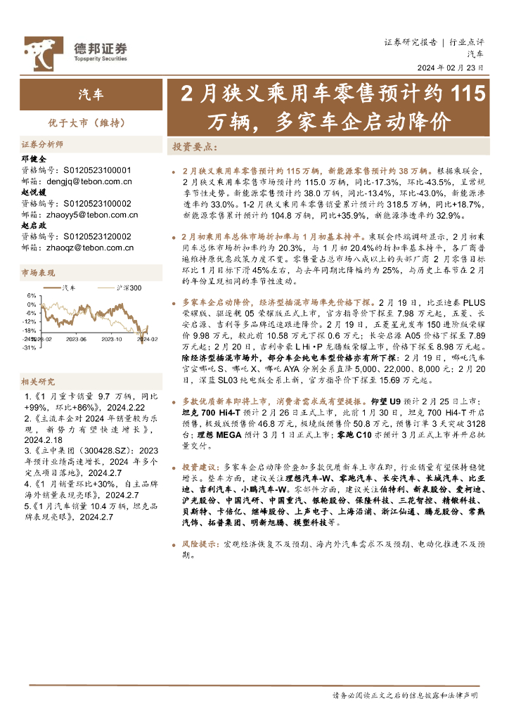 德邦证券:汽车:2月狭义乘用车零售预计约115万辆,多家车企启动降价.pdf