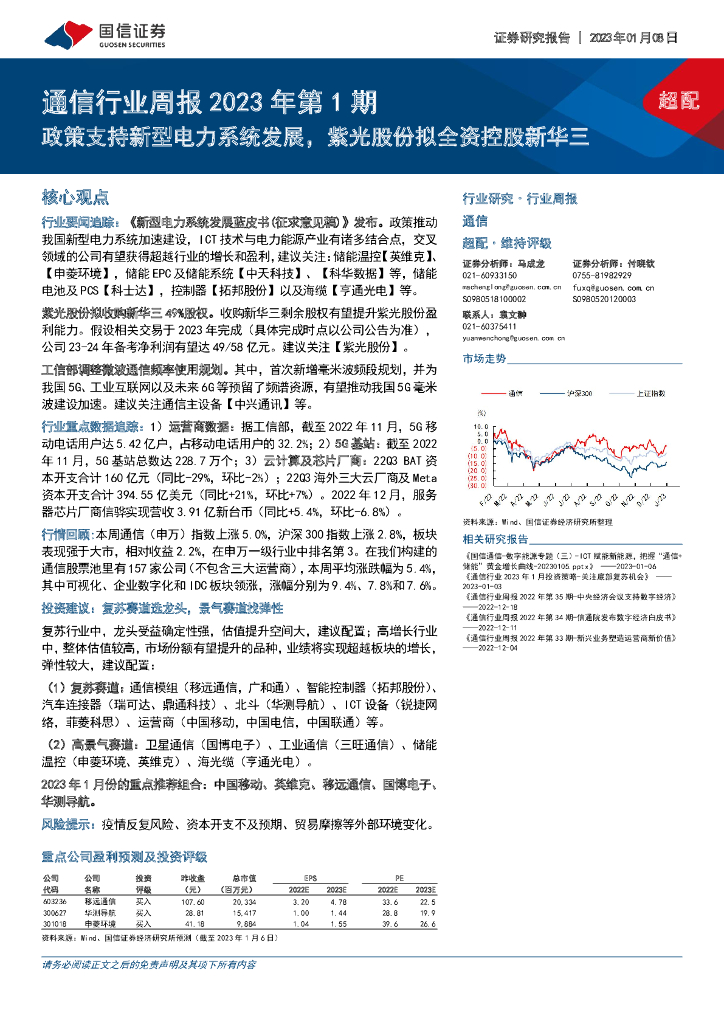 国信证券:通信行业周报2023年第1期:政策支持新型电力系统发展,紫光股份拟全资控股新华三.pdf