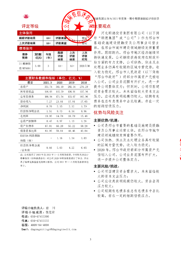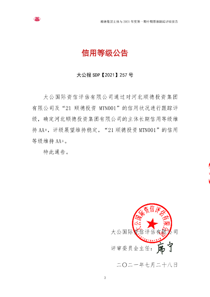 大公:河北顺德投资集团有限公司主体与2021年度第一期中期票据跟踪评级报告.pdf