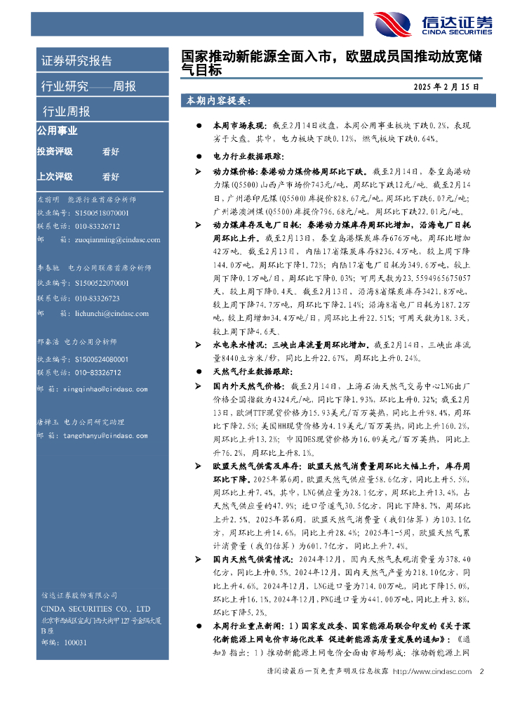 信达证券:公用事业—电力天然气周报:国家推动新能源全面入市,欧盟成员国推动放宽储气目标.pdf