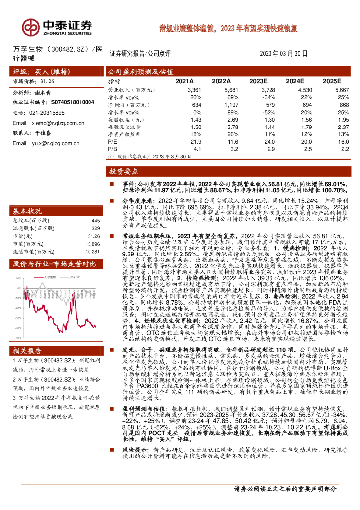 中泰证券:万孚生物(300482)-常规业绩整体稳健,2023年有望实现快速恢复.pdf