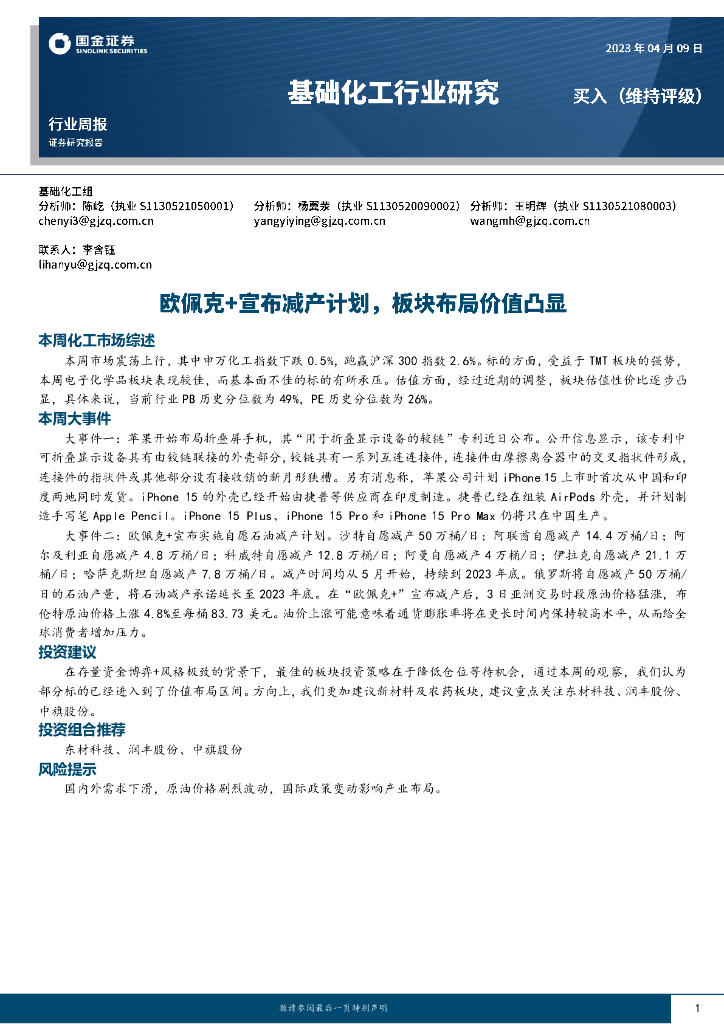 国金证券:基础化工行业研究:欧佩克+宣布减产计划,板块布局价值凸显.pdf