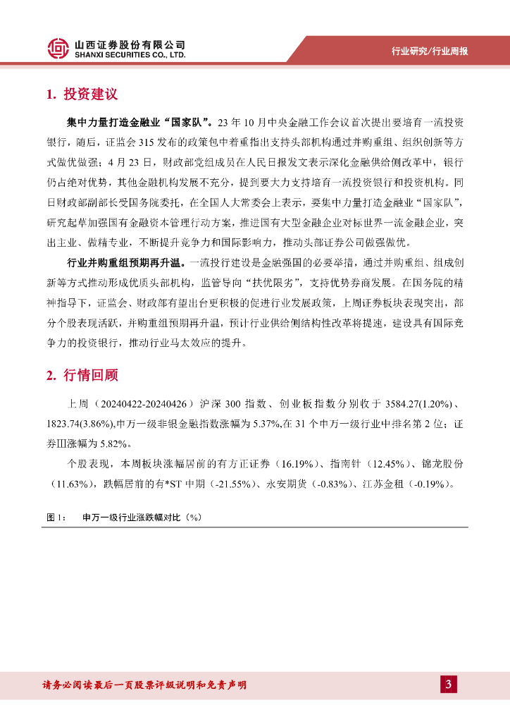 山西证券:非银行金融行业周报:打造金融“国家队”,推动头部券商做优做强.pdf